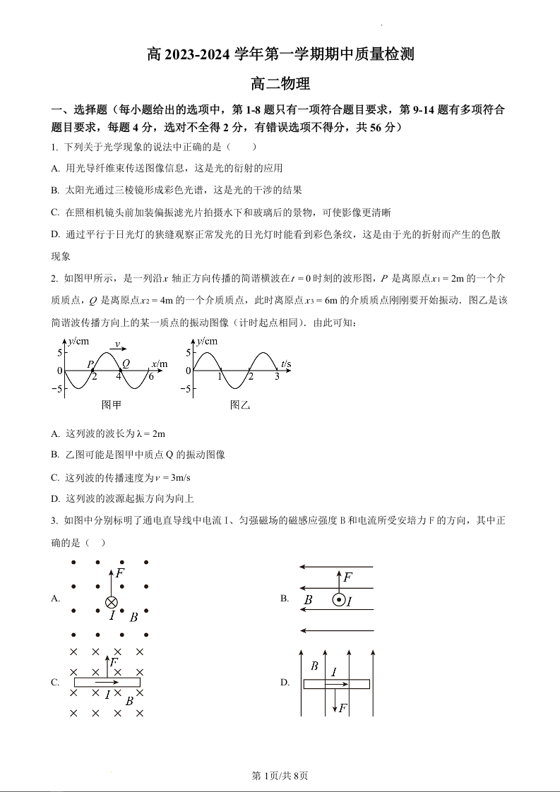 陕西省西安市西北工业大学附属中学2023-2024学年高二上学期期中考试物理(原卷版)