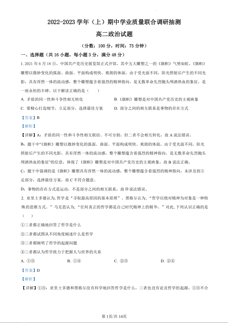 重庆市乌江新高考协作体2023-2024学年高二上学期11月期中考试政治(精品解析版)