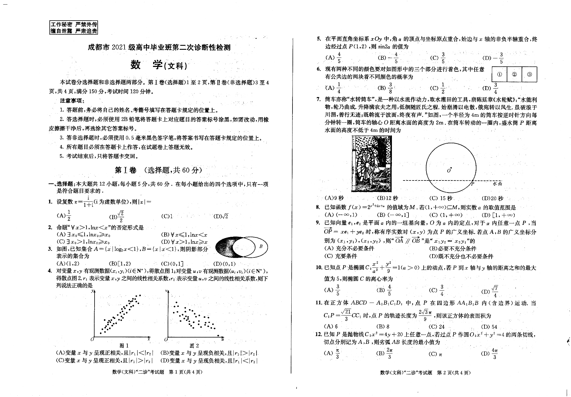 四川省成都市2021级高中毕业班第二次诊断性检测(成都二诊)文科数学