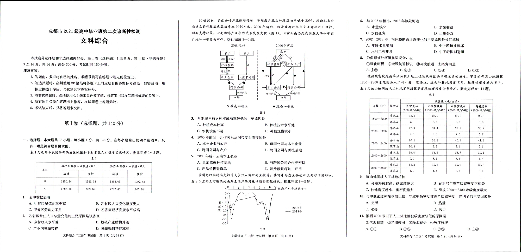 四川省成都市2021级高中毕业班第二次诊断性检测(成都二诊)文综