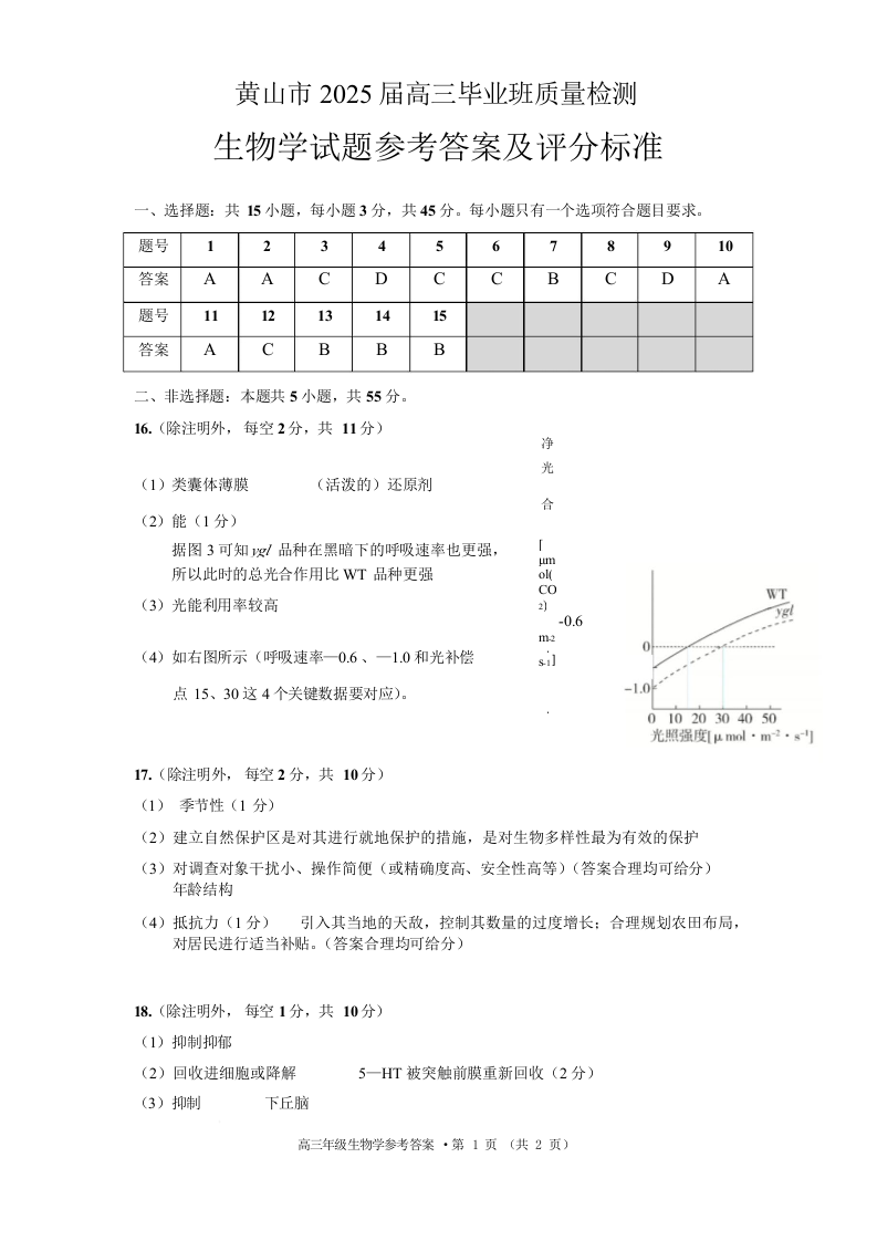 安徽省宣城市黄山市2024-2025学年下学期高三二模检测生物答案