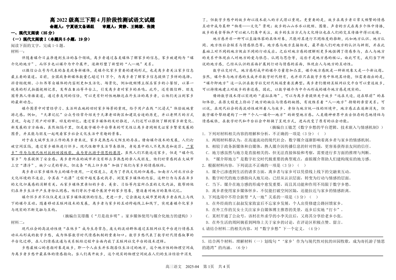 四川省成都市树德中学2024-2025学年高三下学期4月月考语文+答案
