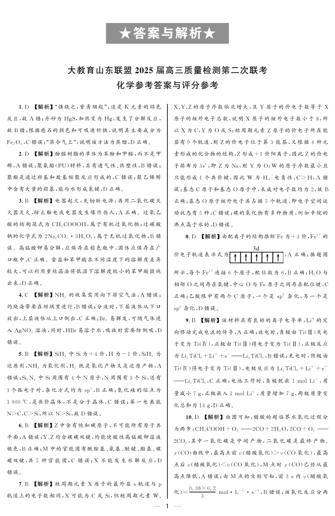 山东省部分高中2024-2025学年下学期高三质量联考化学答案