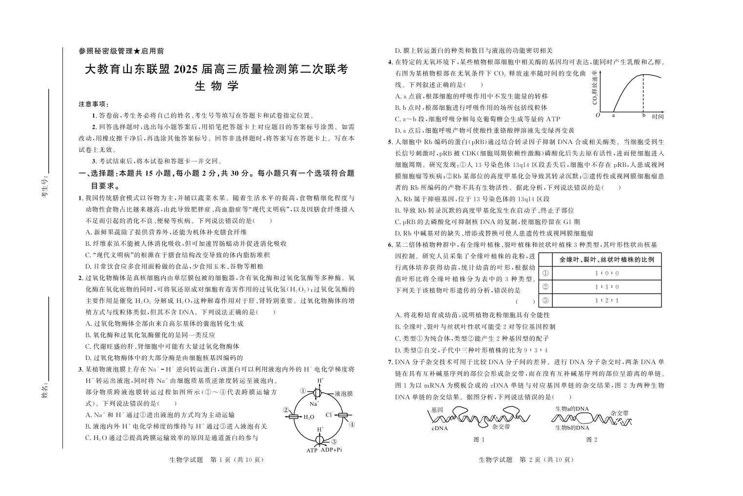 山东省部分高中2024-2025学年下学期高三质量联考生物