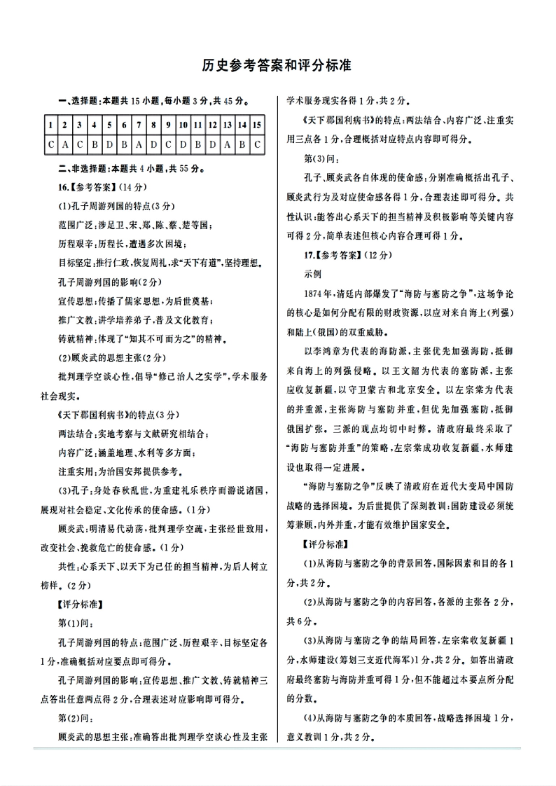 山东省部分高中2024-2025学年下学期高三质量联考历史答案