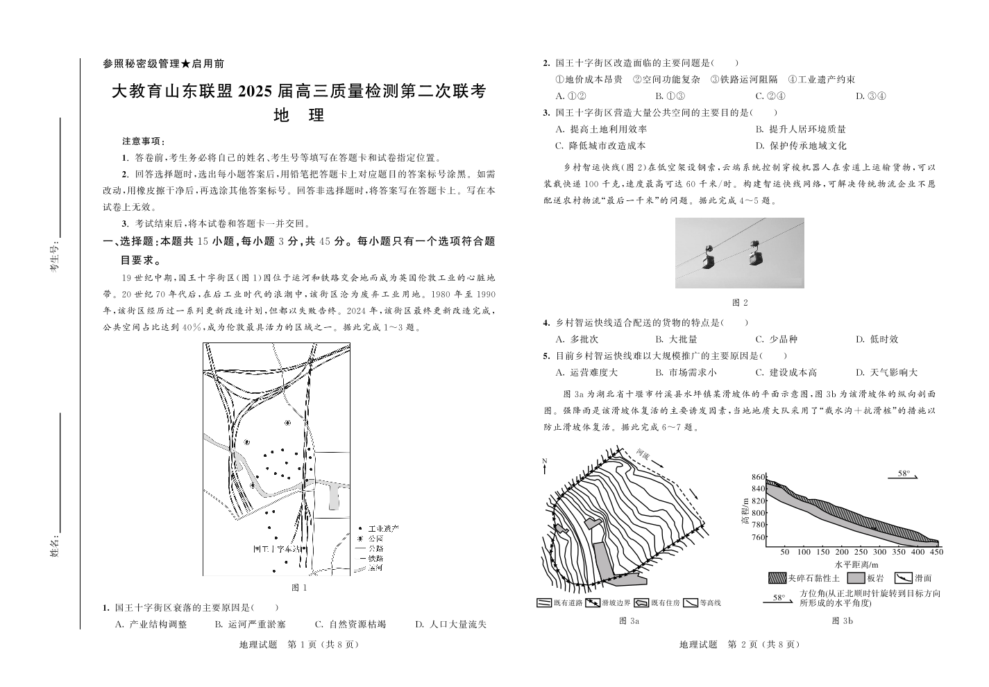 山东省部分高中2024-2025学年下学期高三质量联考地理