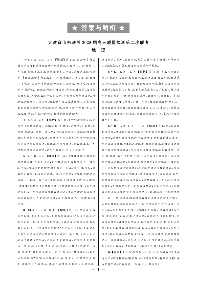 山东省部分高中2024-2025学年下学期高三质量联考地理答案