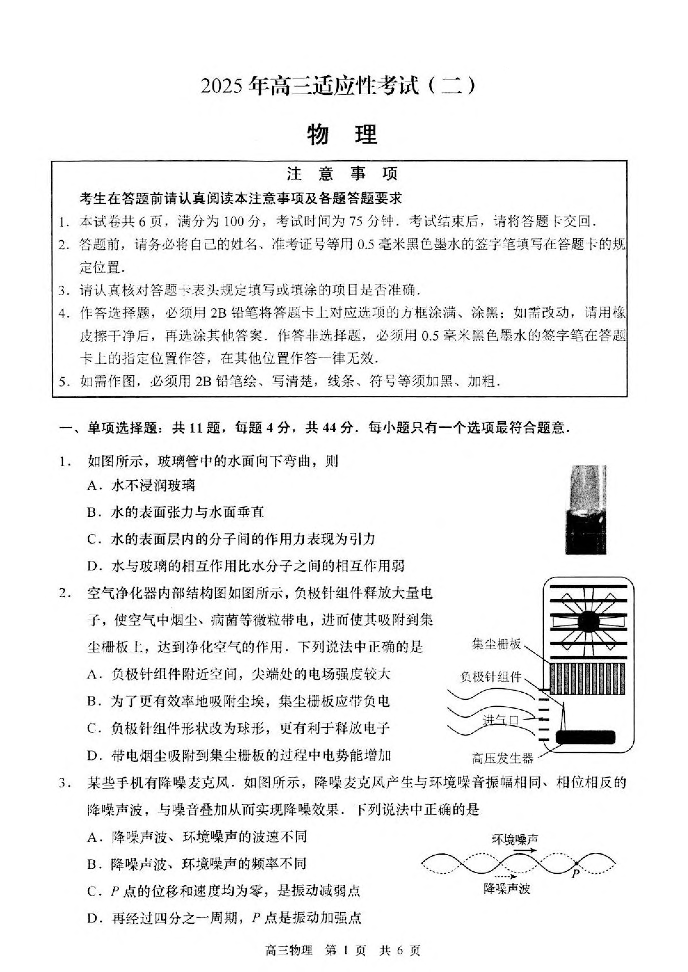 江苏省南通市如皋市2024-2025学年下学期高三适应性考试(二)物理+答案