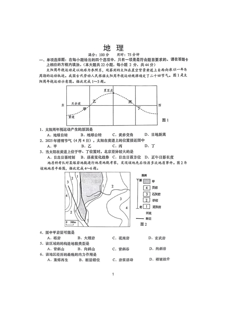 江苏省南通市如皋市2024-2025学年下学期高三适应性考试(二)地理+答案
