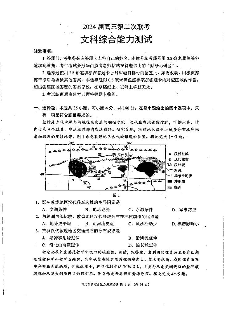 四川省成都市蓉城联盟2024届高三下学期第二次联考文综