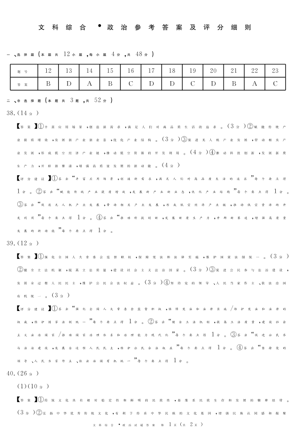 四川省九市(广安、眉山、遂宁、雅安、资阳、乐山、广元、自贡、内江)2024届第二次诊断考试政治答案