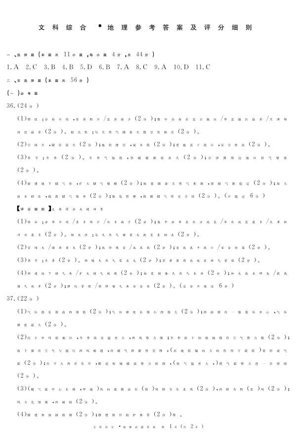四川省九市(广安、眉山、遂宁、雅安、资阳、乐山、广元、自贡、内江)2024届第二次诊断考试地理答案