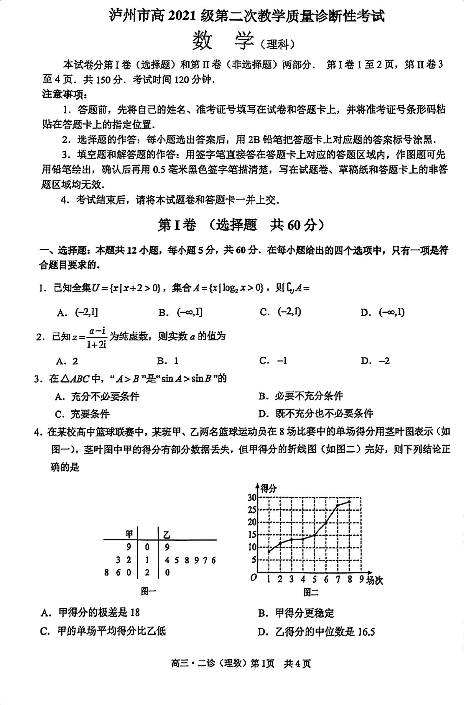 四川省泸州市2024届高三第二次教学质量诊断性考试理科数学