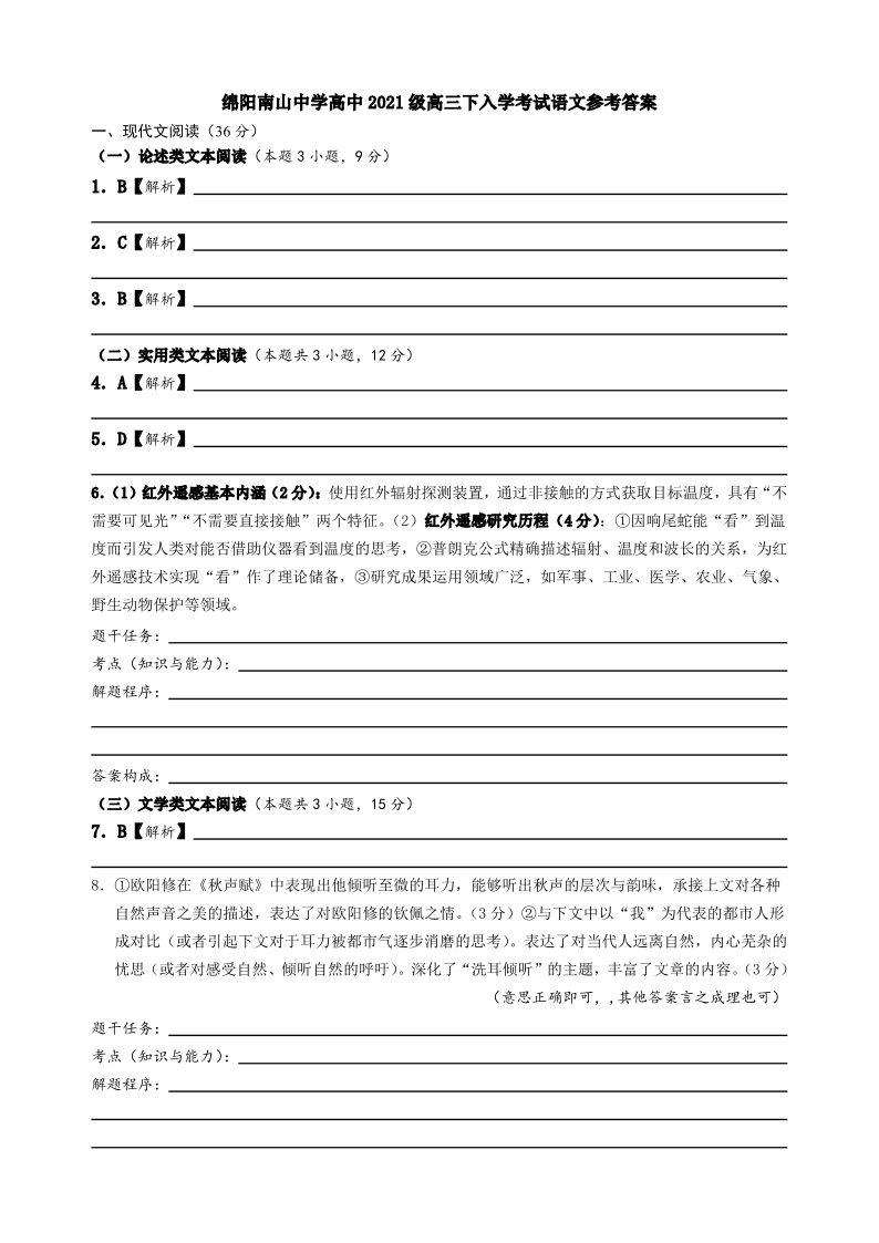 四川省绵阳南山中学2024届高三下学期入学考试语文答案