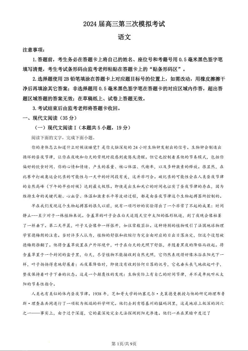 四川省成都市蓉城名校联盟2024届高三下学期第三次模拟考试语文(原卷版)
