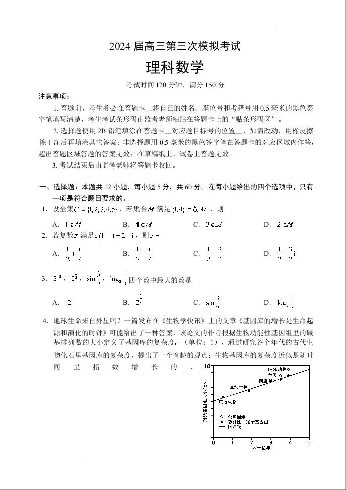 四川省成都市蓉城名校联盟2024届高三下学期第三次模拟考试理科数学+答案