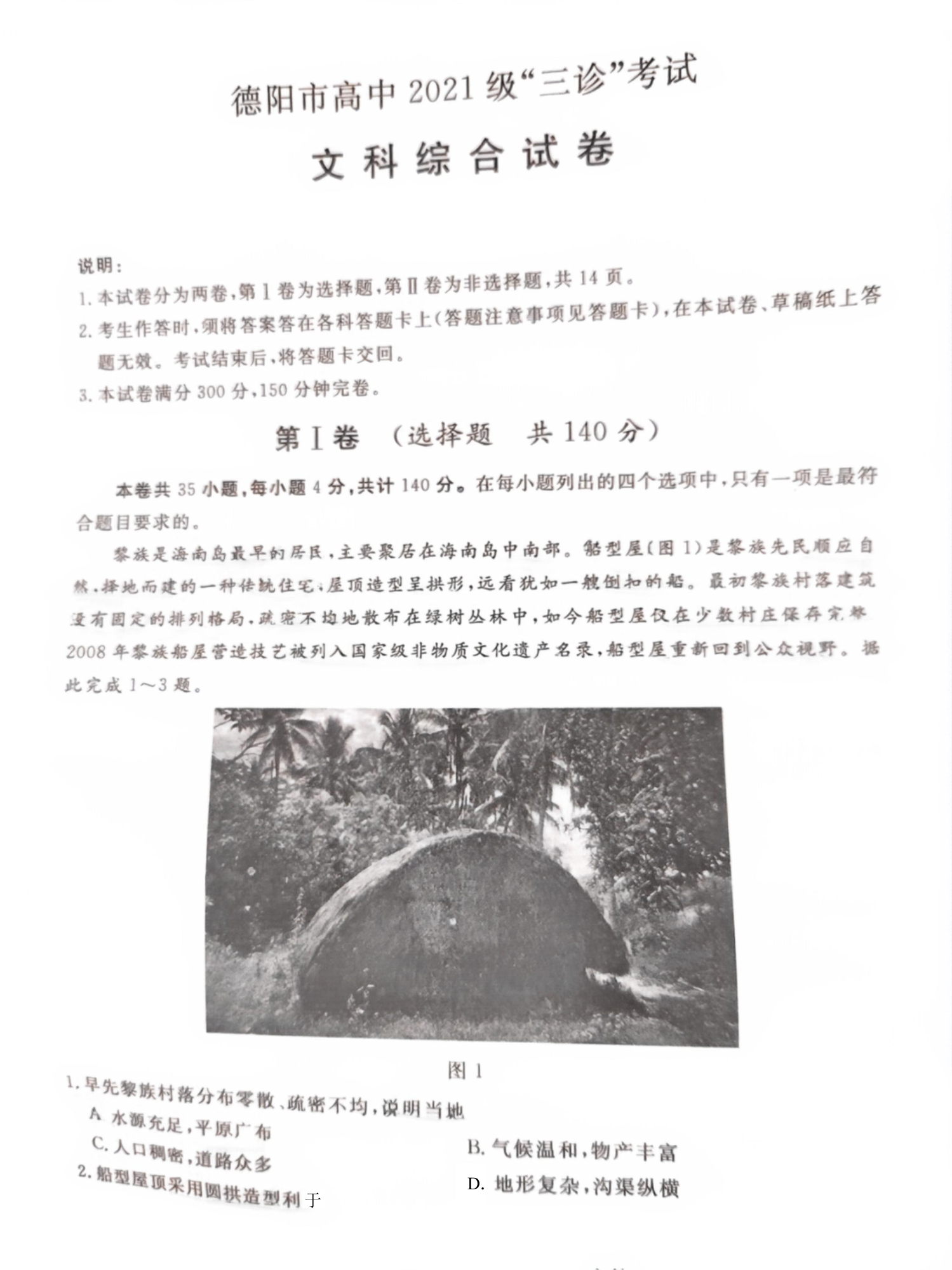 四川省德阳市2024届高三下学期三诊考试文综