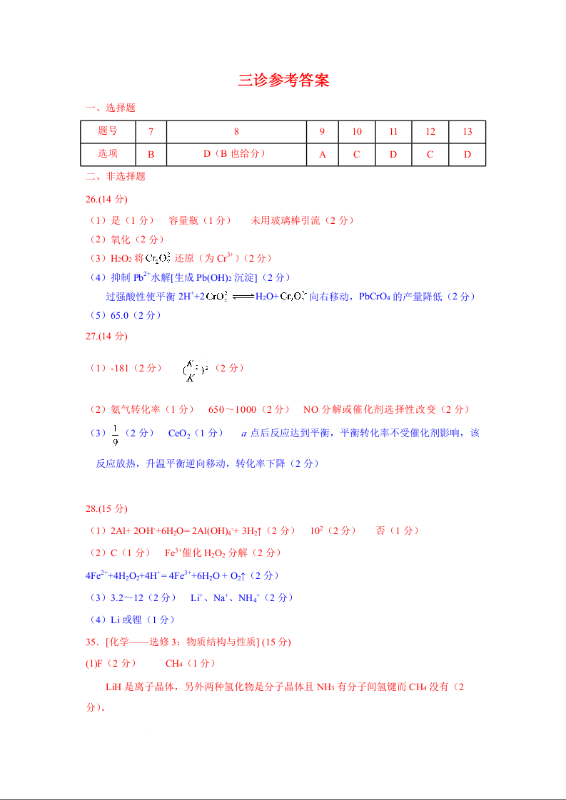 四川省泸州市高2021级第三次教学质量诊断性考试(泸州三诊)化学答案