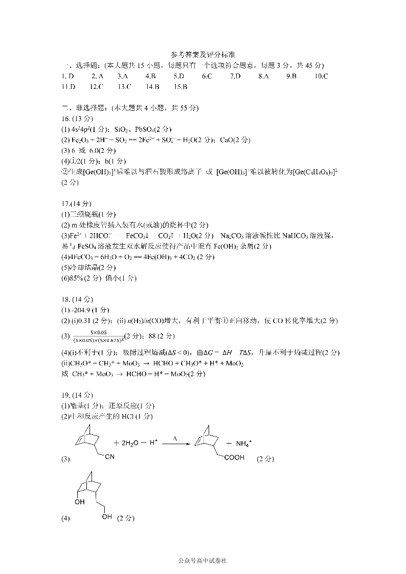 四川省成都市第七中学2024~2025学年度下期高2025届三诊模拟考试化学答案