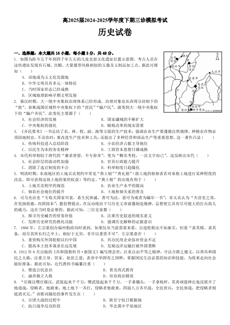 四川省成都市第七中学2024~2025学年度下期高2025届三诊模拟考试历史