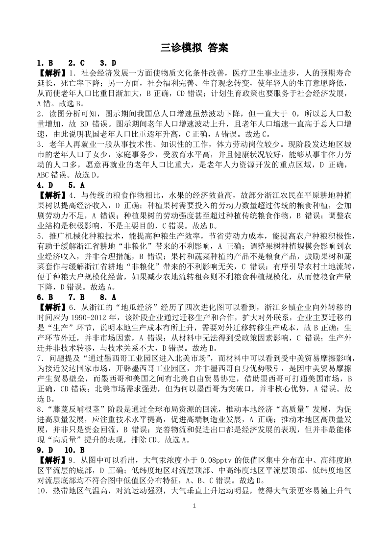 四川省成都市第七中学2024~2025学年度下期高2025届三诊模拟考试地理答案
