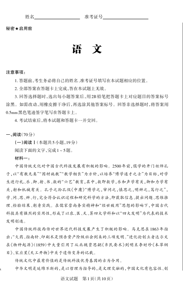 山西省思而行2024-2025学年下学期高三二模适应性测试语文