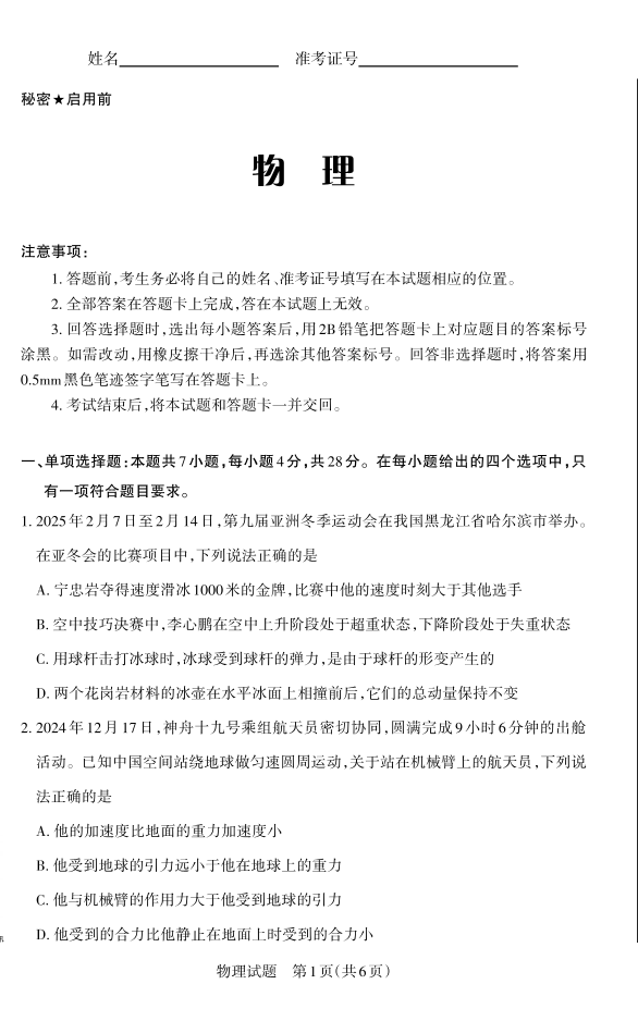山西省思而行2024-2025学年下学期高三二模适应性测试物理