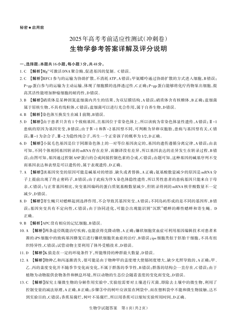山西省思而行2024-2025学年下学期高三二模适应性测试生物答案