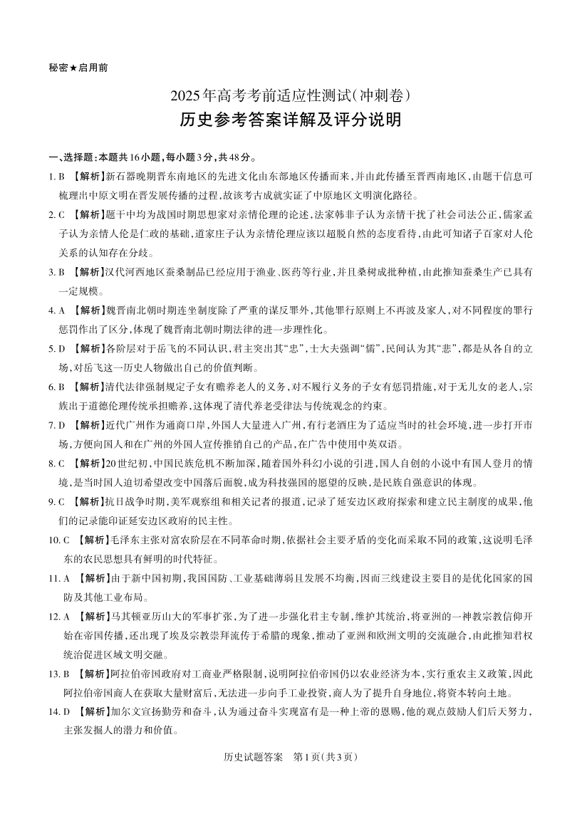 山西省思而行2024-2025学年下学期高三二模适应性测试历史答案