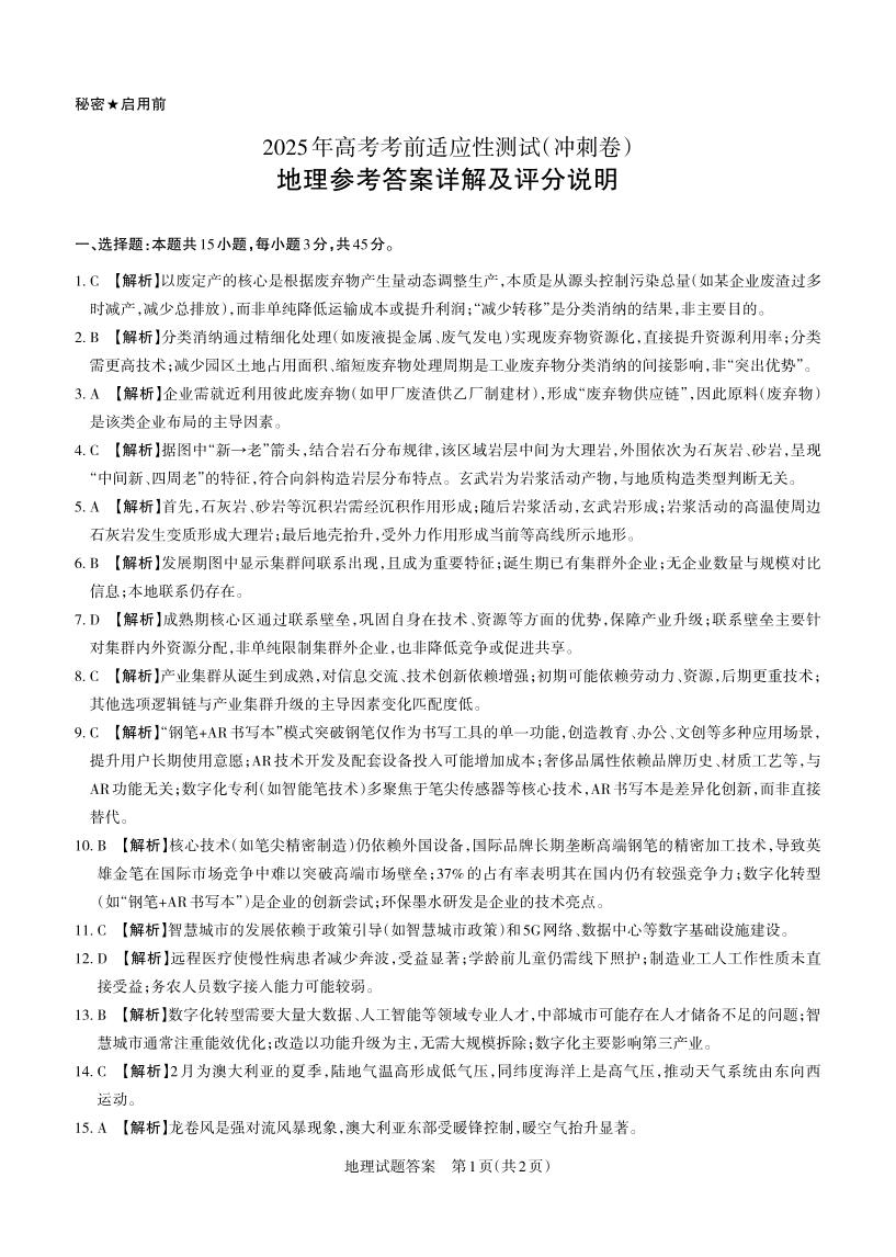 山西省思而行2024-2025学年下学期高三二模适应性测试地理答案