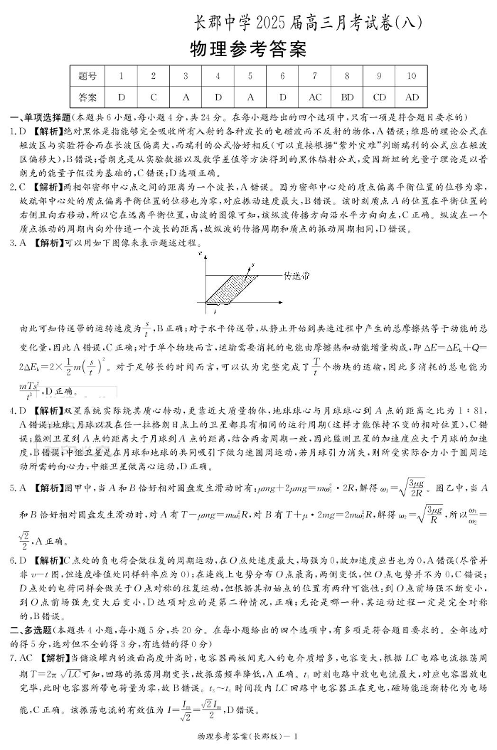 湖南省长郡中学2024-2025学年下学期高三月考(八)物理答案