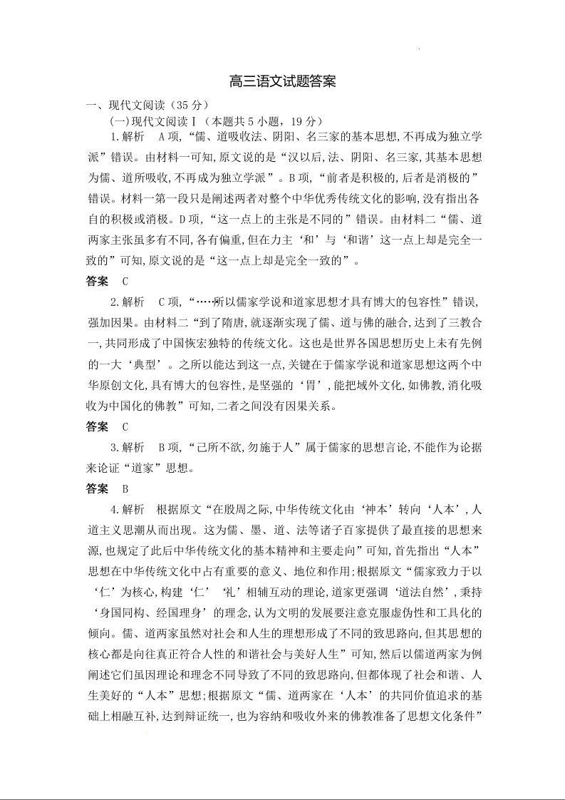 湖北省高中协作体2024-2025学年下学期4月高三期中联考语文答案