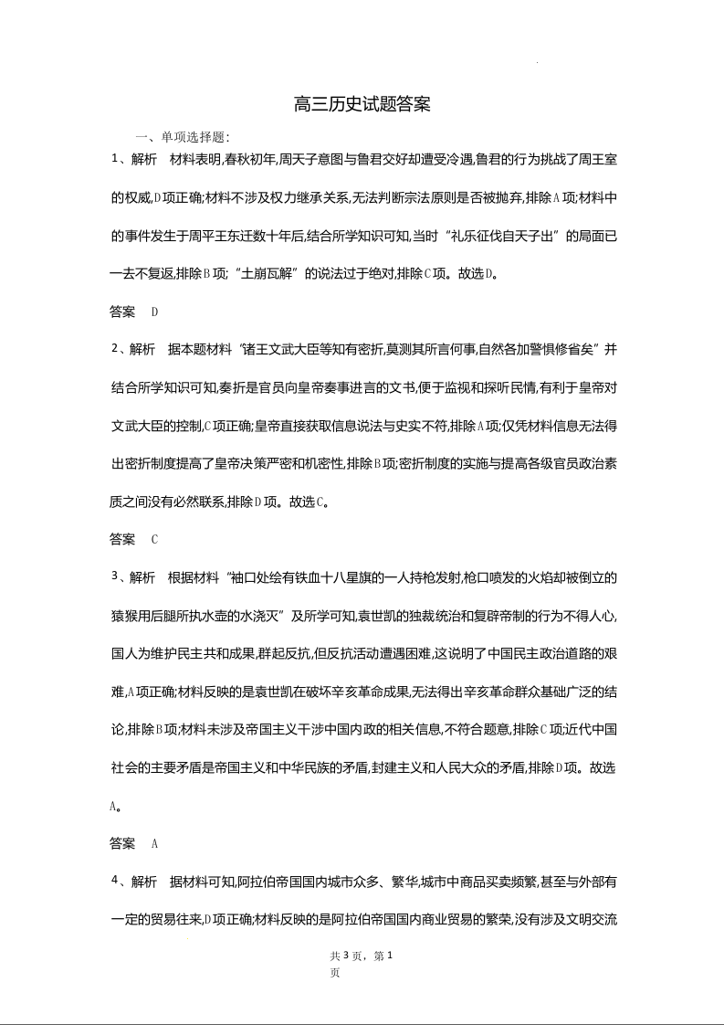 湖北省高中协作体2024-2025学年下学期4月高三期中联考历史答案