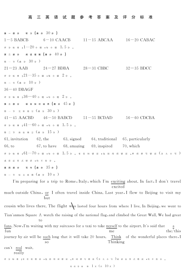 四川省2024届学考大联盟高三年级下学期第三次模拟联考(学考三模)英语答案