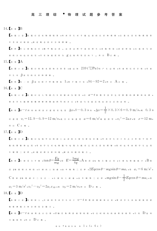 四川省2024届学考大联盟高三年级下学期第三次模拟联考(学考三模)物理答案