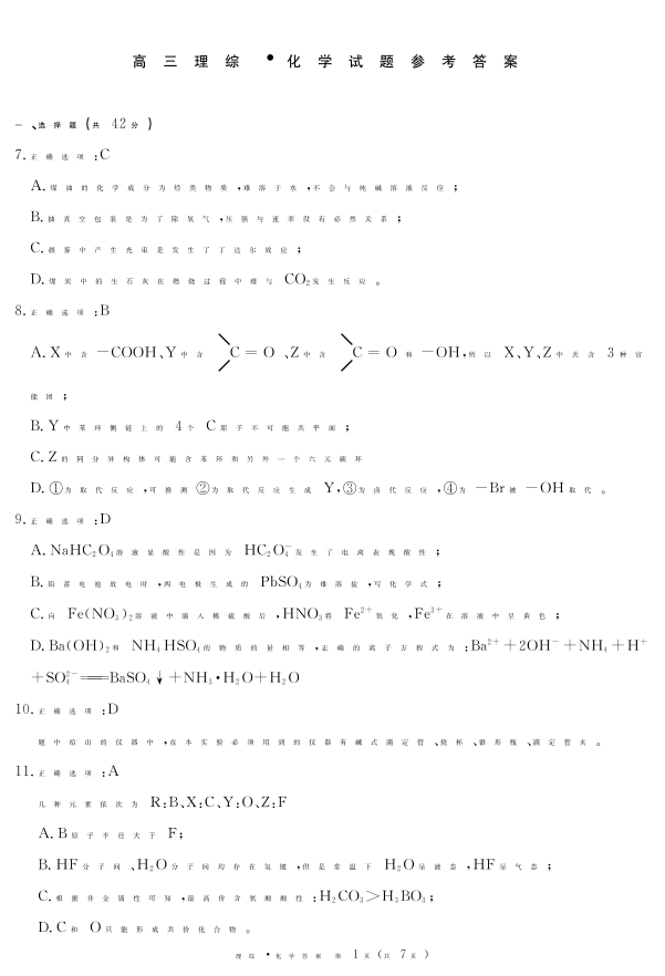四川省2024届学考大联盟高三年级下学期第三次模拟联考(学考三模)化学答案