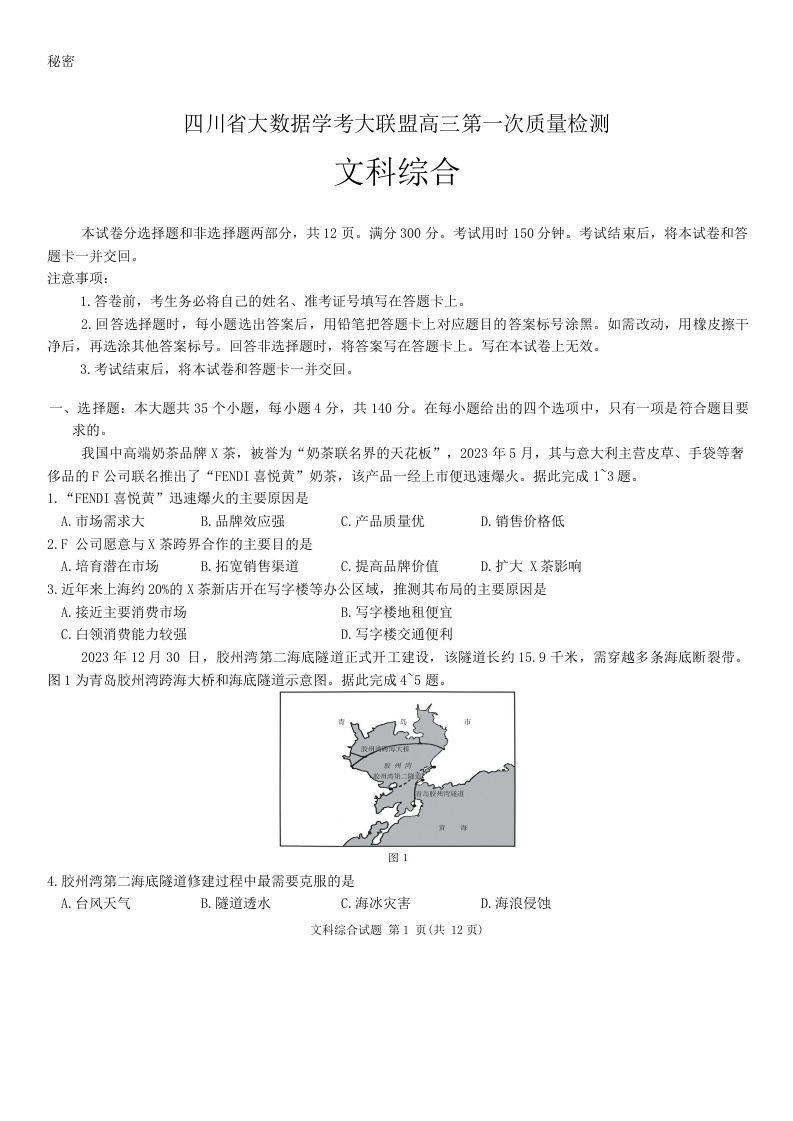 四川省2024届学考大联盟高三年级下学期第三次模拟联考(学考三模)文综