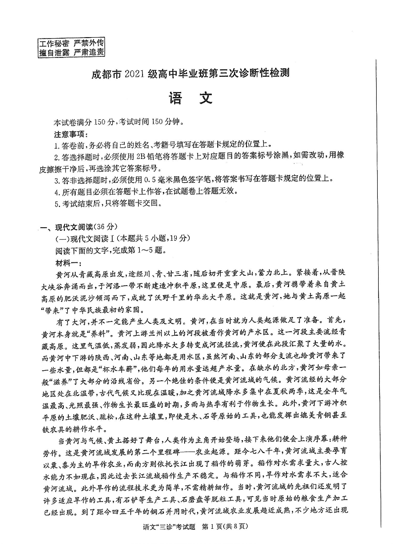 四川省成都市2024届高三下学期第三次诊断性检测(成都三诊)语文