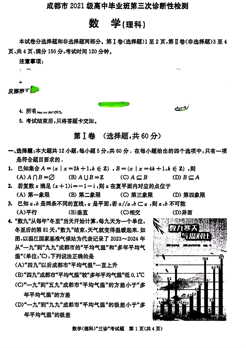 四川省成都市2024届高三下学期第三次诊断性检测(成都三诊)理科数学