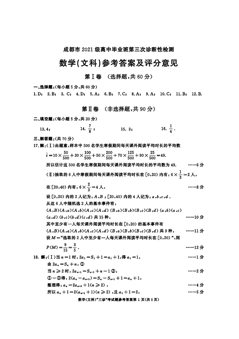 四川省成都市2024届高三下学期第三次诊断性检测(成都三诊)数学答案