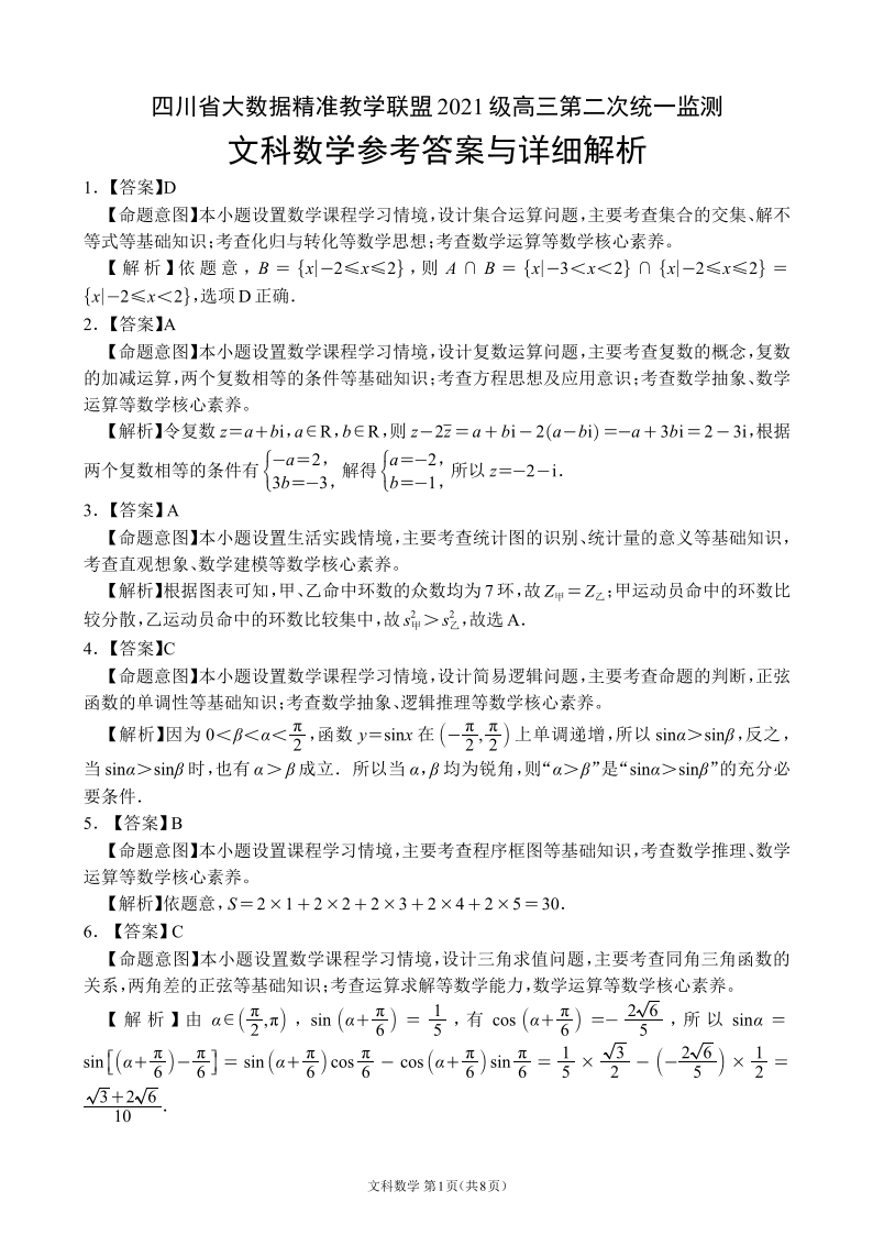 四川省大数据精准教学联盟2021级(2024届)高三年级第二次统一监测(大数据二统)文科数学答案