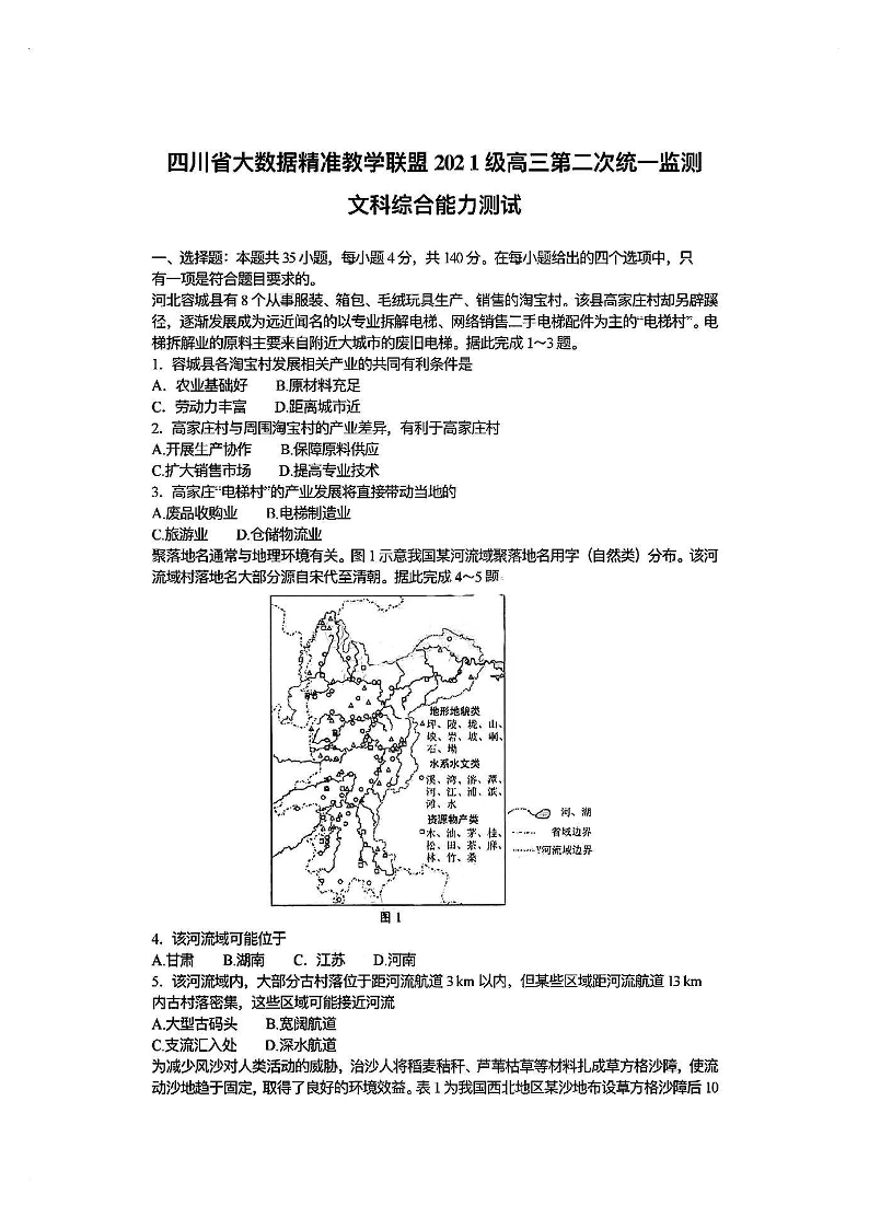 四川省大数据精准教学联盟2021级(2024届)高三年级第二次统一监测(大数据二统)文综