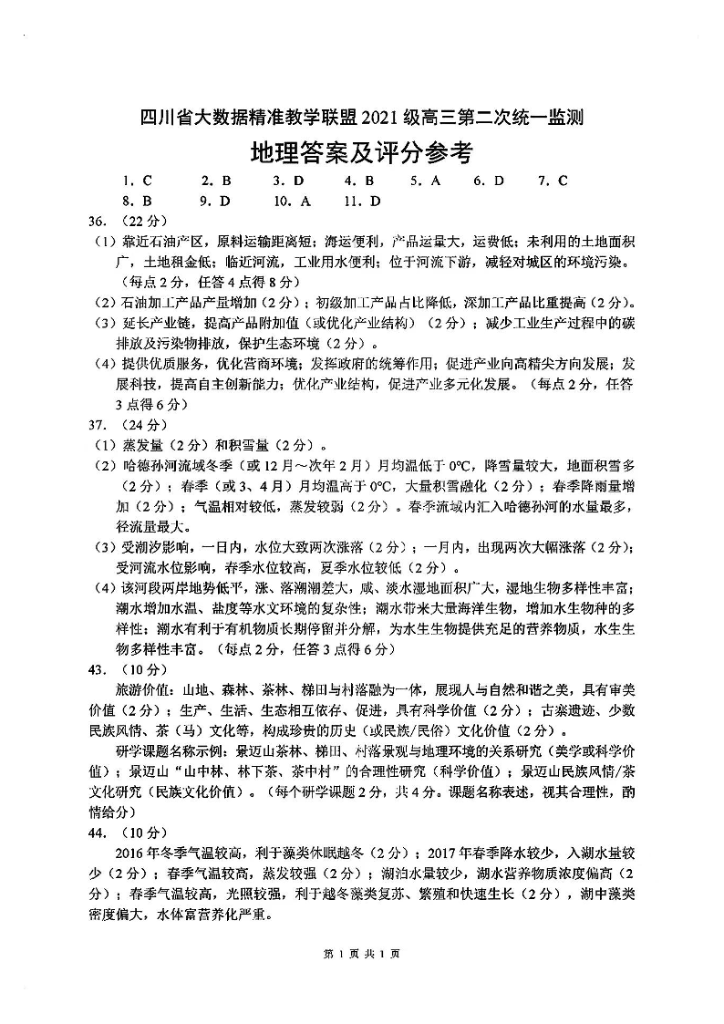 四川省大数据精准教学联盟2021级(2024届)高三年级第二次统一监测(大数据二统)文综答案