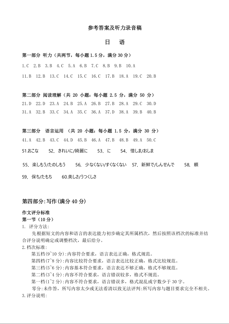 湖北省第十届2024-2025学年下学期4月高三调研模拟考试日语答案
