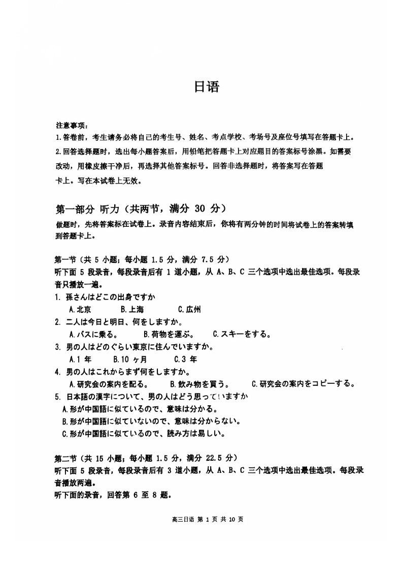 四川省达州市2024-2025学年下学期高三第二次诊断性测试日语