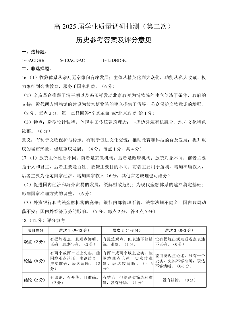 重庆市主城五区2024-2025学年下学期高三二诊质量调研抽测历史答案
