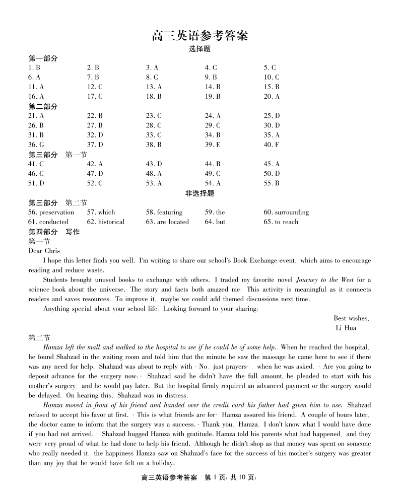 安徽省鼎尖教育2024-2025学年下学期4月高三逐梦杯实验班联考英语答案
