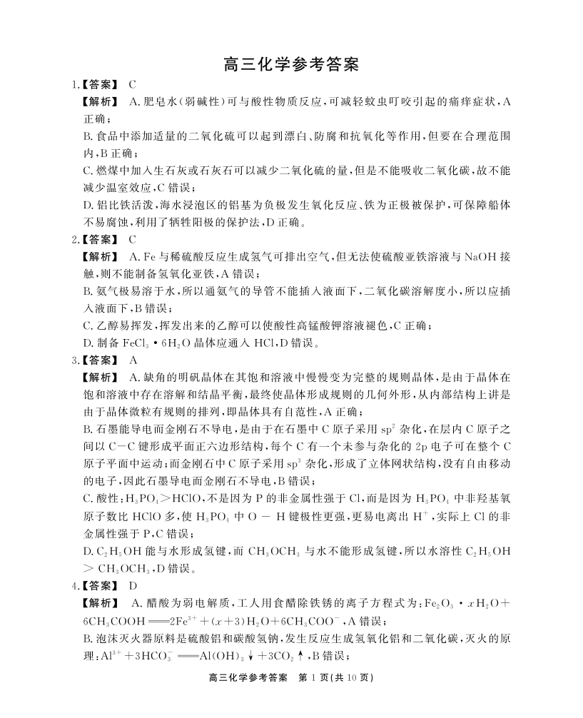 安徽省鼎尖教育2024-2025学年下学期4月高三逐梦杯实验班联考化学答案