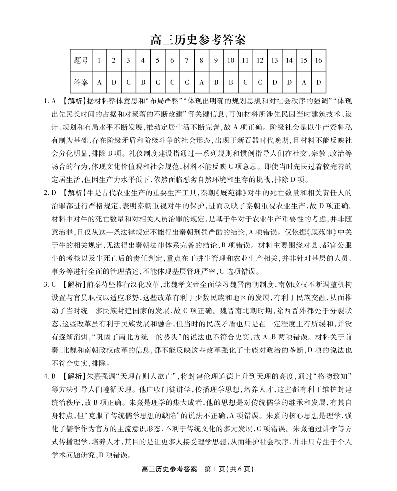 安徽省鼎尖教育2024-2025学年下学期4月高三逐梦杯实验班联考历史答案