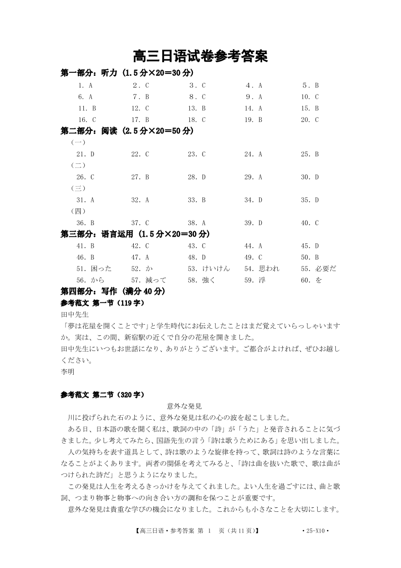 广东省湛江市2024- 2025 学年下学期高三普通高考二模测试日语答案
